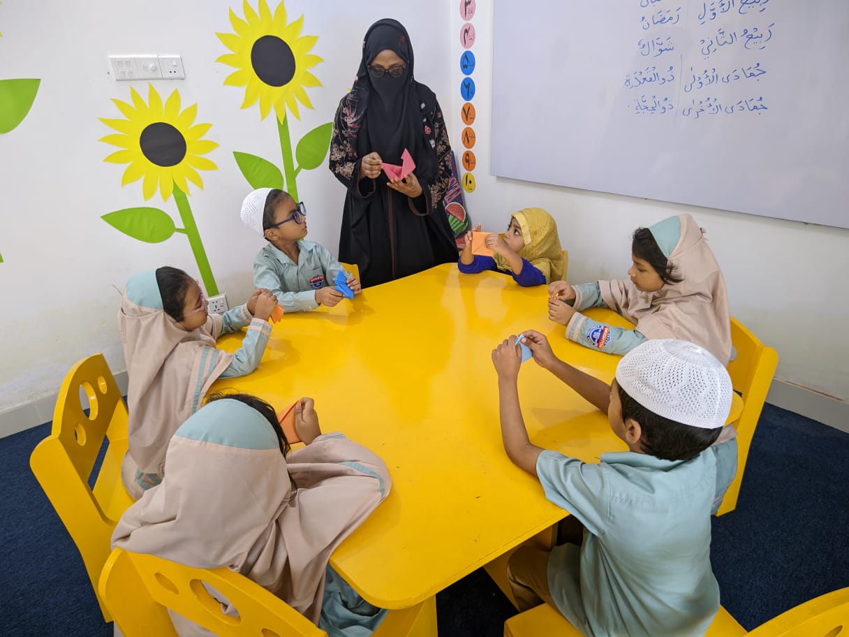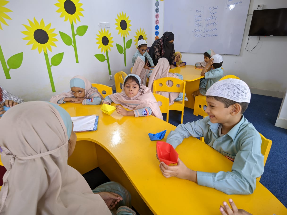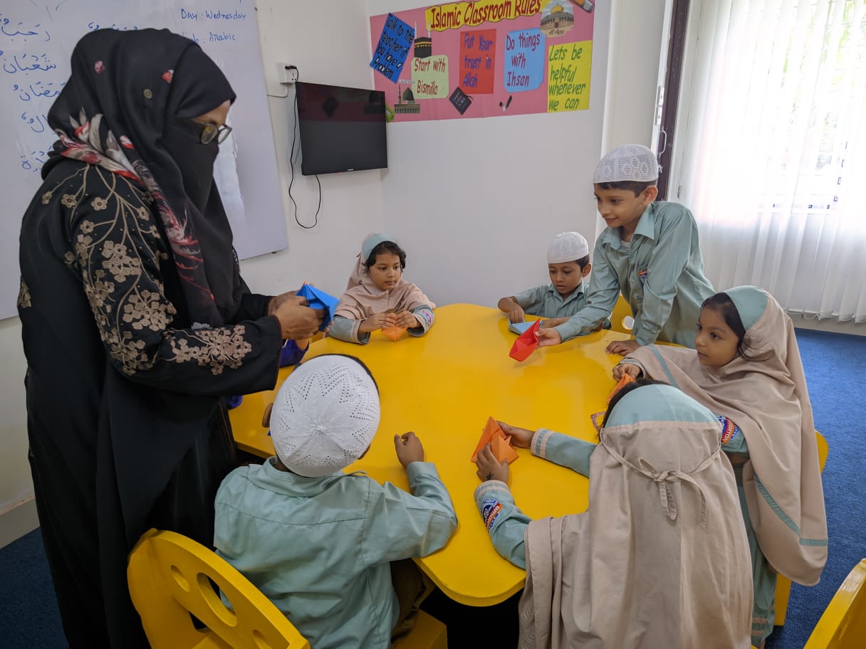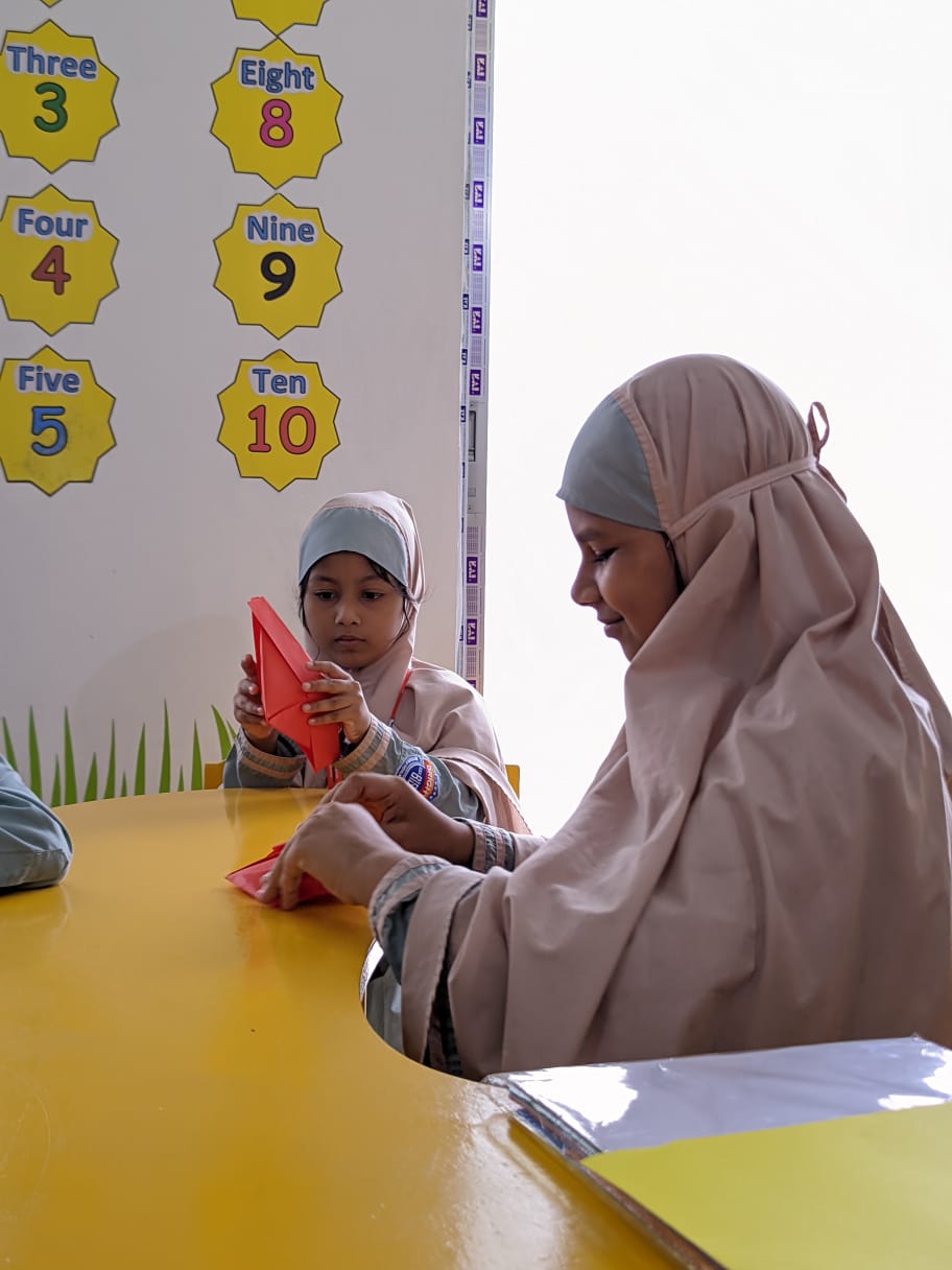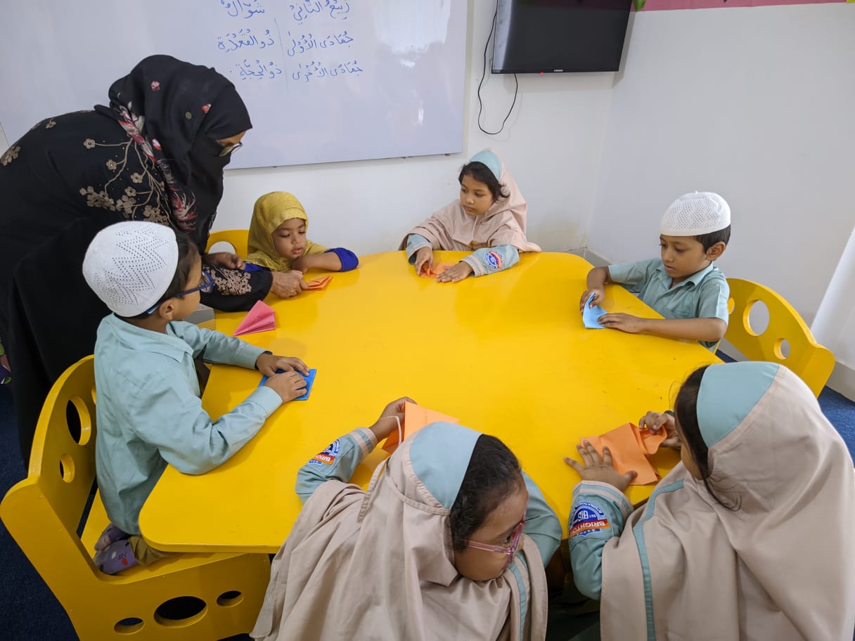 Assalamu alaikum. Our students are actively engaged in arts and crafts as part of their ECA class. We prioritize the importance of learning through enjoyable activities. Crafting boosts children’s motor skills and fosters their mental development.
