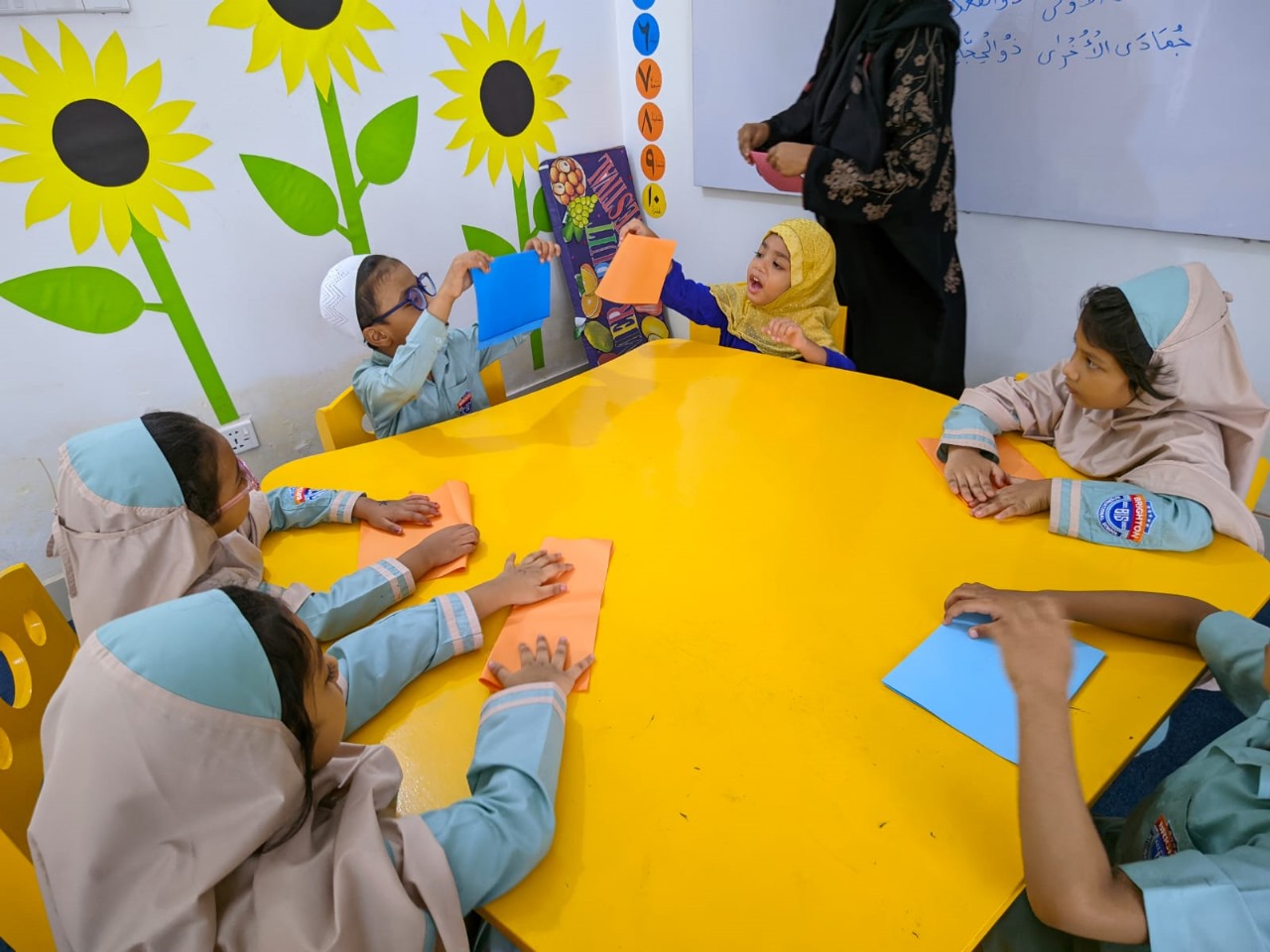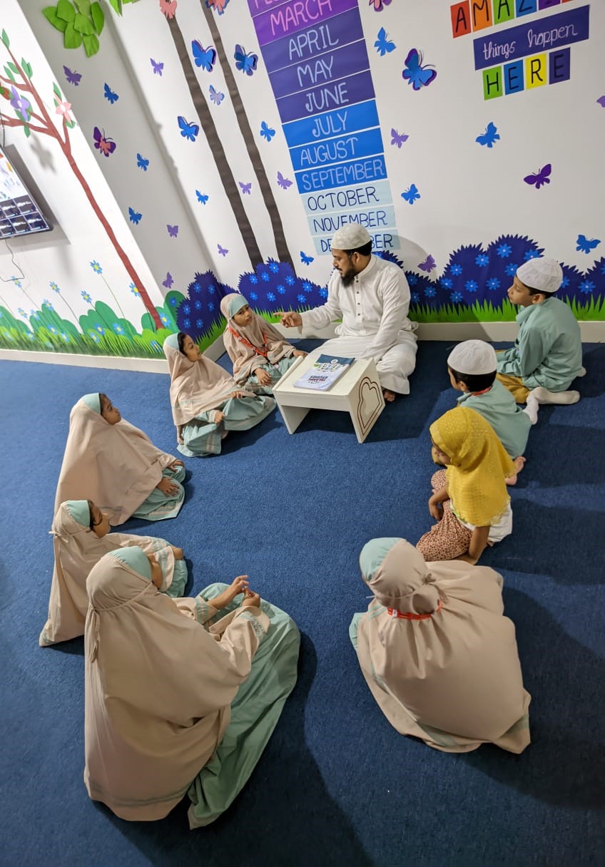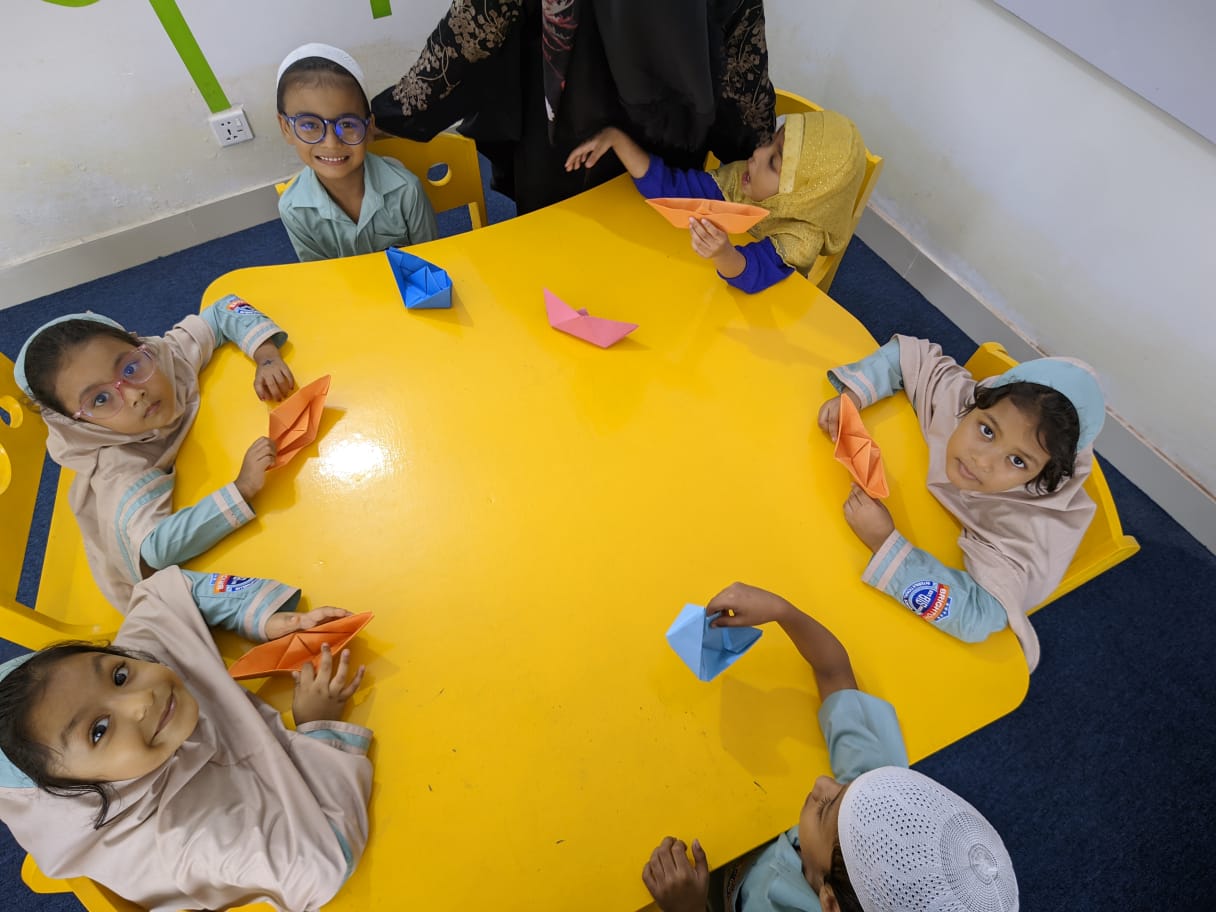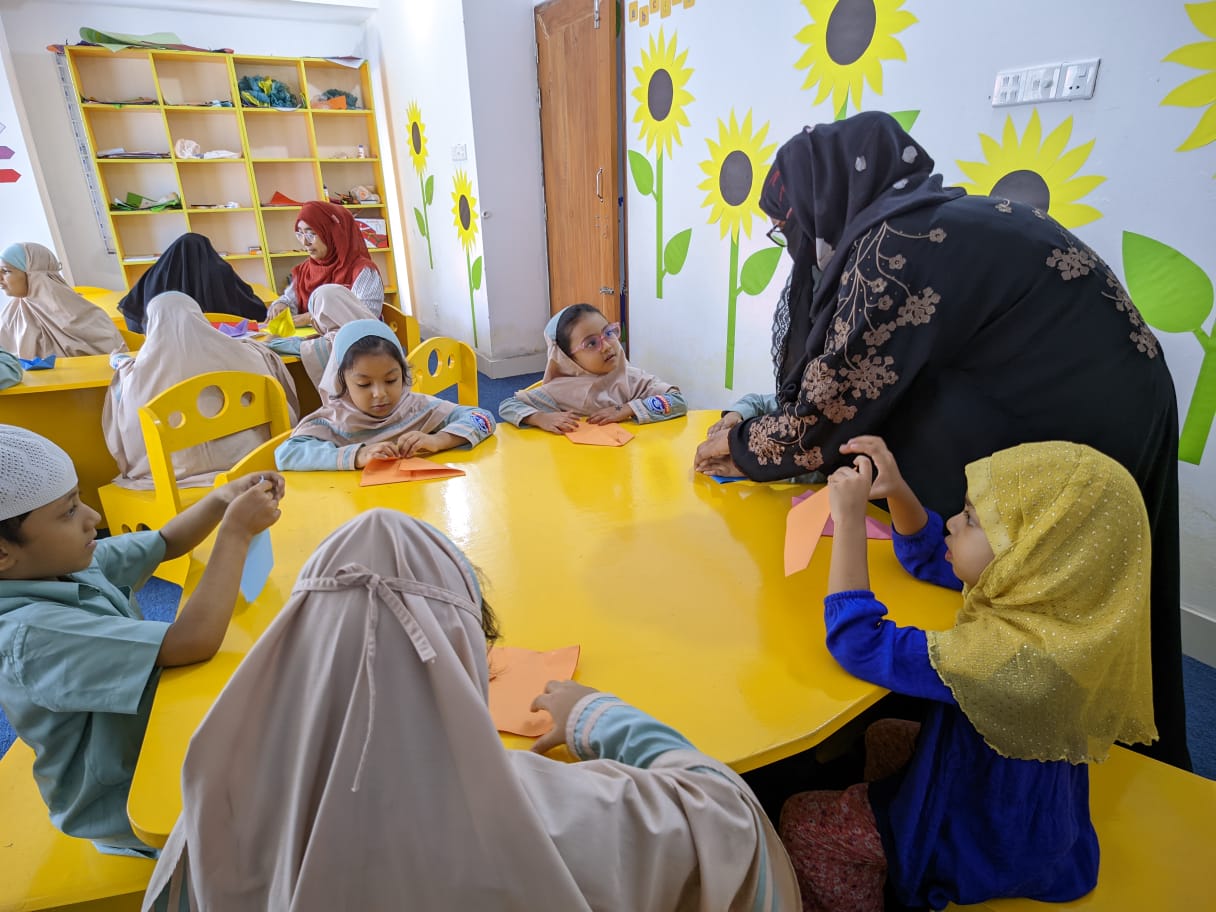 Assalamu alaikum. Our students are actively engaged in arts and crafts as part of their ECA class. We prioritize the importance of learning through enjoyable activities. Crafting boosts children’s motor skills and fosters their mental development.