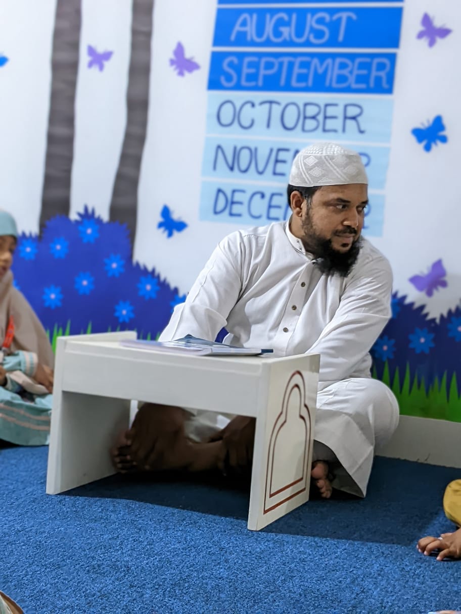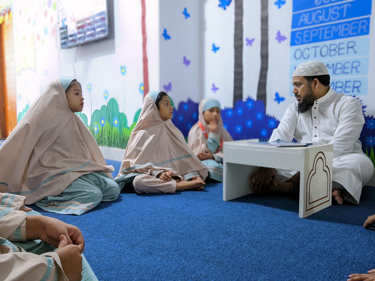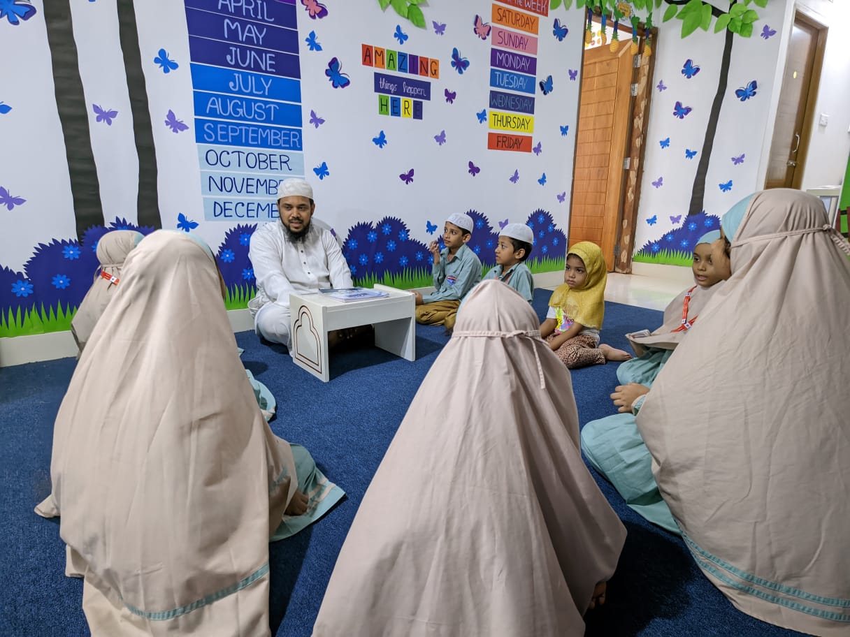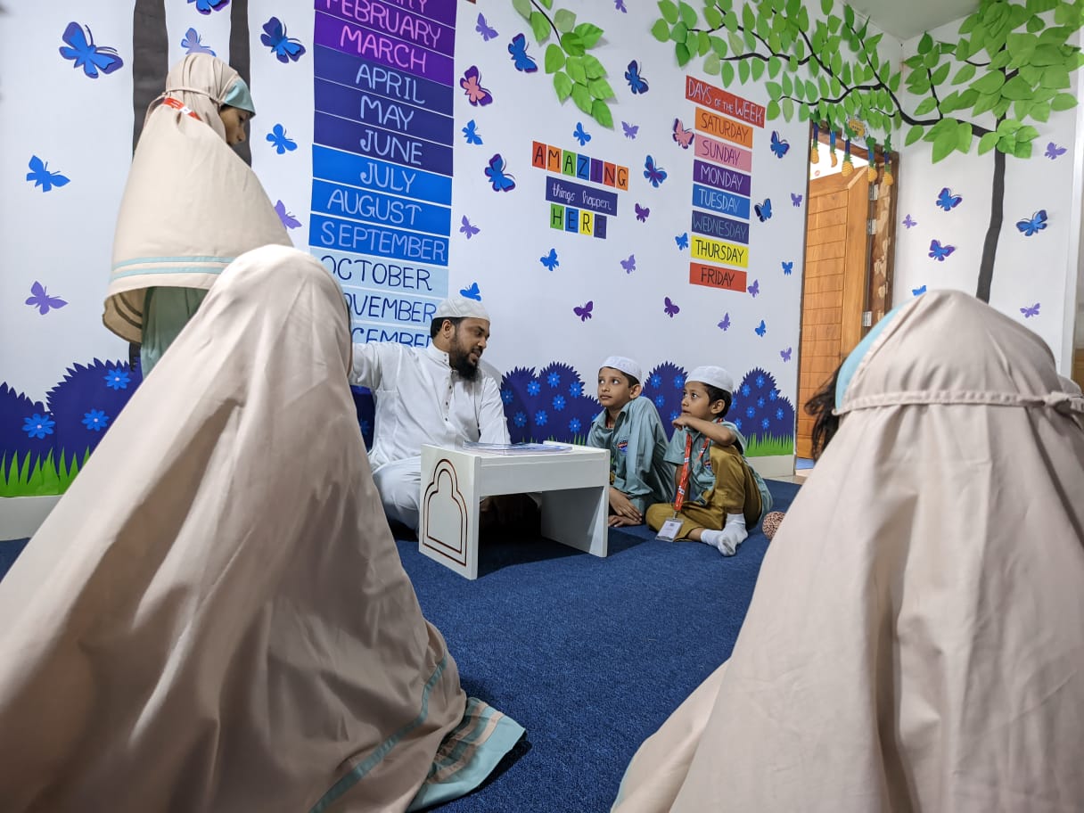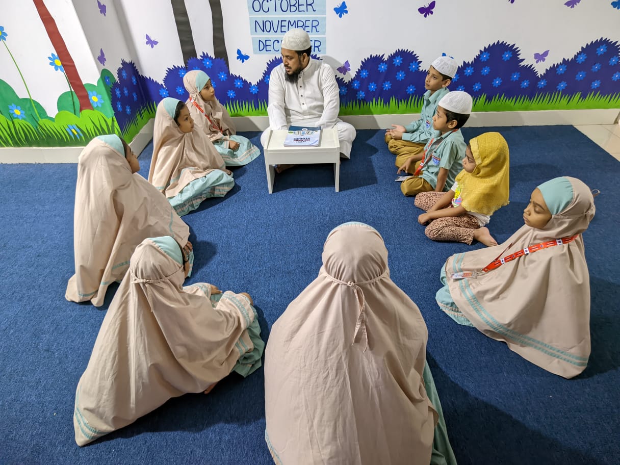 As part of our tarbiyah (Islamic upbringing) sessions, Ustadh Hossain Madani is teaching a class on the significance of offering “Salam” (greetings of peace) in Islam, highlighting it’s rules (ahkams) through role play. At BIS, we emphasize practical teaching methods to instill Islamic values in our students’ lives, encouraging them to actively practice and spread Islam.